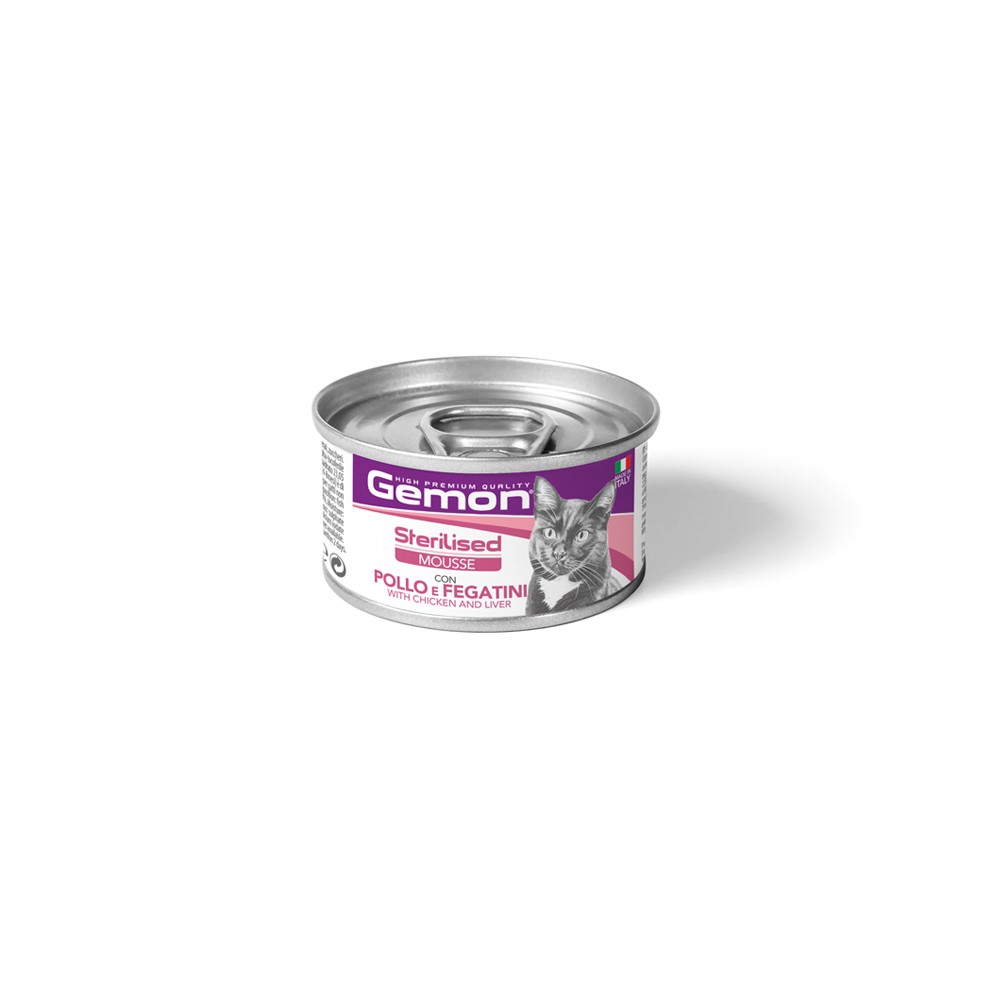 Υγρή Τροφή - Κονσέρβα Γάτας Gemon Cat Mousse Sterilised Κοτόπουλο & Συκώτι 85gr.