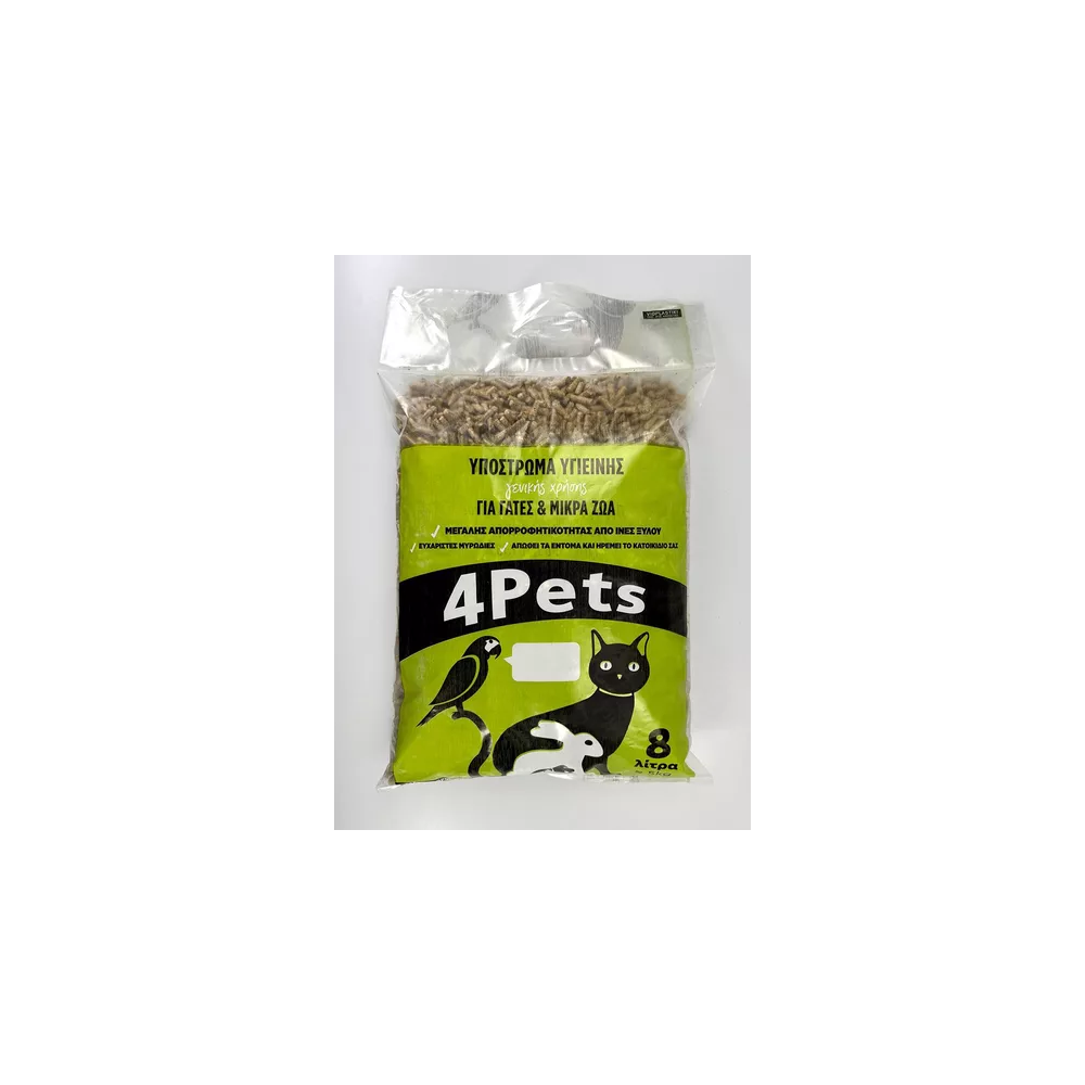 Το 4 pets είναι ένα οικονομικό φυσικό προϊόν παρασκευασμένο από συμπιεσμένο πριονίδι, σε μορφή πέλλετ (σαν μικρά μακαρόνια).