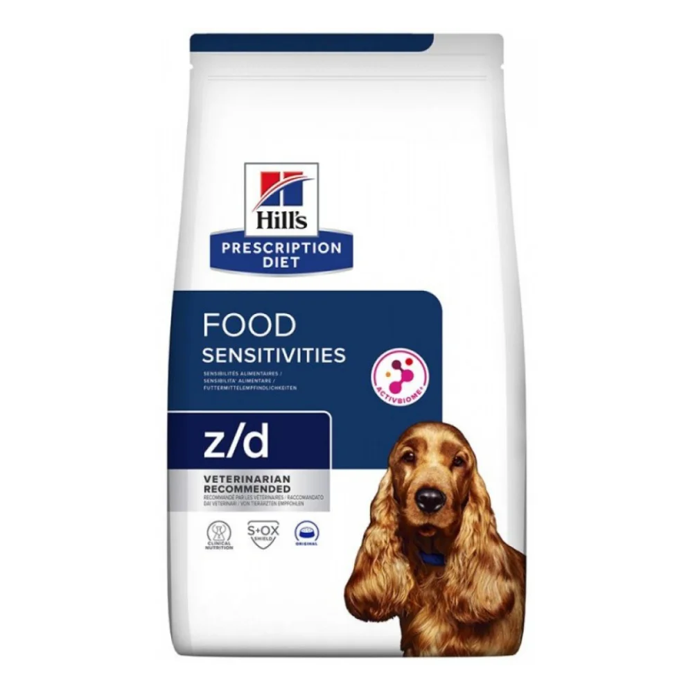Με το προϊόν Hill´s Prescription Diet Canine z/d Food Sensitivities ελαχιστοποιούνται οι αλλεργικές αντιδράσεις χάρη στη μοναδική υδρολυμένη φόρμουλα ζωικής πρωτεΐνης με μοριακό βάρος μικρότερο από 3.000 Dalton. Σε αυτό το πλαίσιο, το υδρόλυμα από συκωτάκια κοτόπουλου είναι η μοναδική πηγή πρωτεΐνης, που κάνει την τροφή ακόμα καλύτερα ανεκτή. Επιπλέον, η τροφή αυτή είναι πλούσια σε ουσιαστικά λιπαρά οξέα, που βοηθάνε στη βελτίωση της υγείας του δέρματος και του τριχώματος.