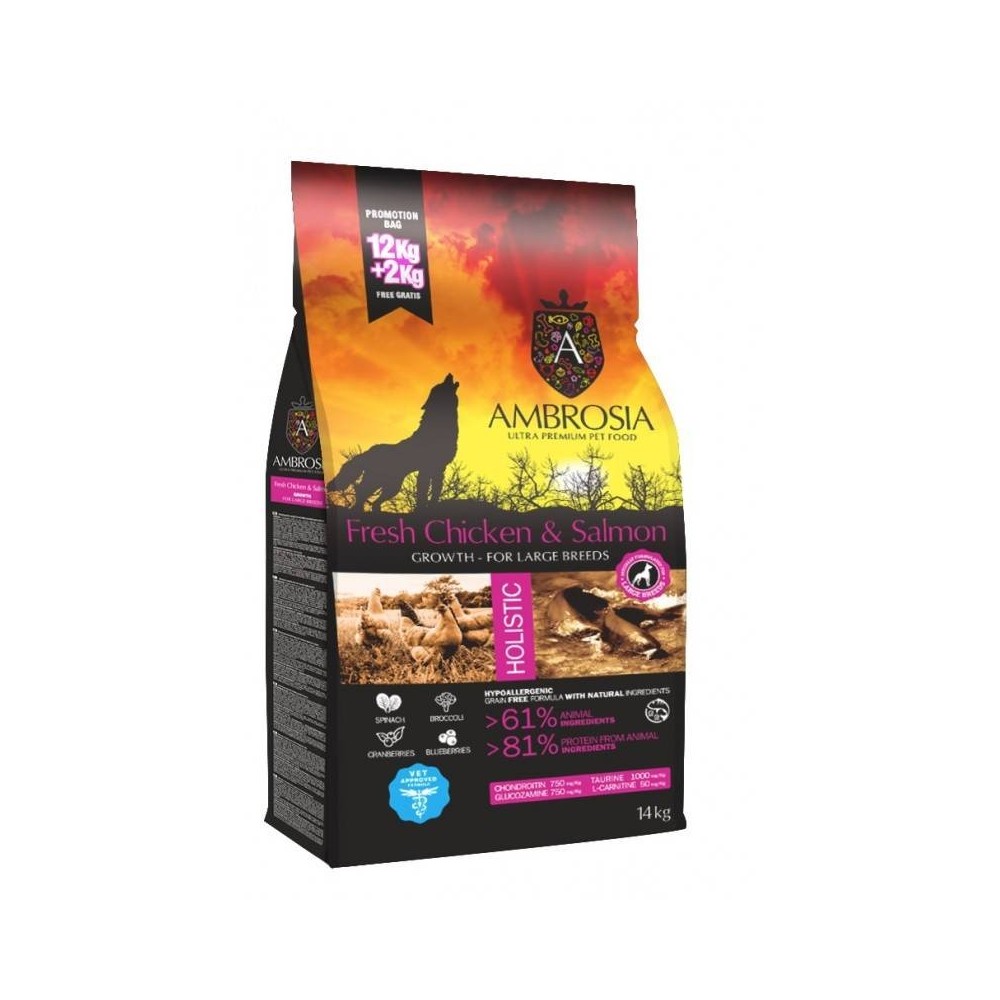 ΣΥΝΘΕΣΗ Πουλερικά (37% εκ των οποίων Φρέσκο Κοτόπουλο χωρίς κόκκαλο 15%, Αφυδατωμένα Πουλερικά 22%), ¶λευρο Πατάτας, Λίπος Πουλερικών (11,5%), Αρακάς, Αφυδατωμένος Αρακάς, Υδρολυμένη Πρωτεΐνη Κοτόπουλου (8%), Αφυδατωμένος Σολωμός (4%), Αφυδατωμένος Πολτός Τεύτλου, Λιναρόσπορος, Μέταλλα, Αφυδατωμένη Μαγιά Μπύρας, αφυδατωμένη πικραλίδα (Φυσική Πηγή Φρουκτοολιγοσακχαριτών και Ινουλίνης), Λάδι Σολωμού (0,5%), MOS (Ολιγοσακχαρίτες Μαννάνης), Υδροχλωρική Γλυκοζαμίνη (750 mg/kg), Θειική Χονδροϊτίνη (750 mg/kg), Αφυδατωμένο Μπρόκολλο, Αφυδατωμένο Σπανάκι, Αφυδατωμένα Σμέουρα, Αφυδατωμένα Μύρτιλλα, Εκχύλισμα Φυτών (Yucca schidigera, Rosemarinus sp, Vitis sp, Curcuma sp, Citrus sp, Eugenia sp).