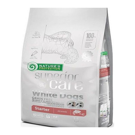 Πλήρης ξηρή τροφή για κουτάβια όλων των φυλών με λευκό τρίχωμα με την υπογραφή της Nature's Protection.