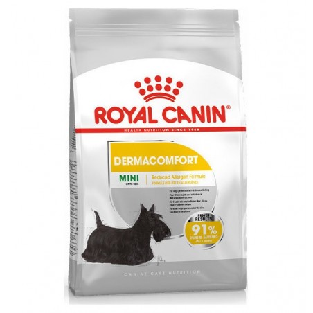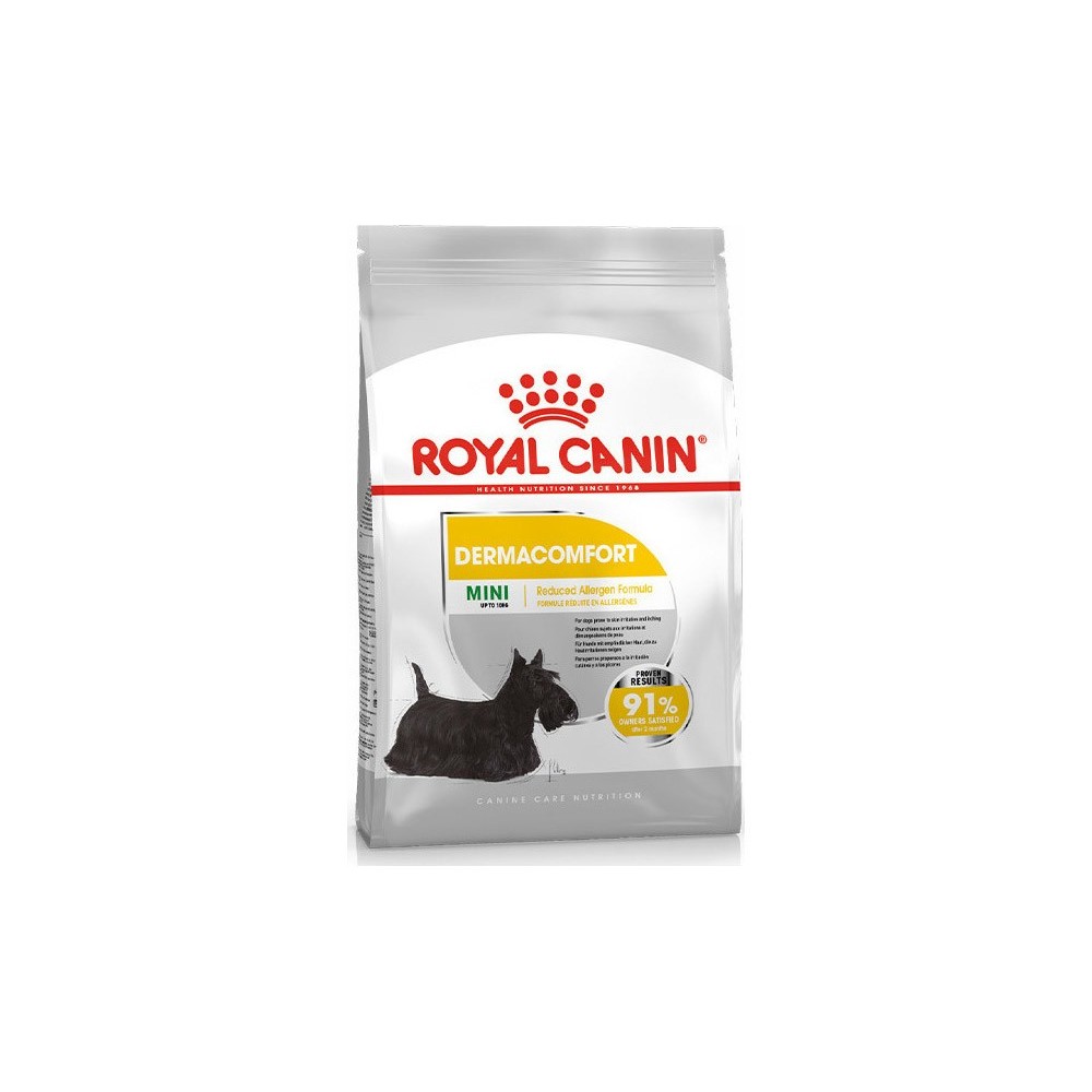 Η κατάσταση του δέρματος αντικατοπτρίζει την υγεία του σκύλου και μια κατάλληλη διατροφή παίζει σημαντικό ρόλο στη διατήρηση της ποιότητας του δέρματος. Η ειδική φόρμουλα MINI DERMACOMFORT με επιλεγμένες πηγές πρωτεΐνης πολύ υψηλής ποιότητας είναι ιδιαιτέρως κατάλληλη για σκύλους με ευαισθησία σε δερματικούς ερεθισμούς και κνησμό. Μετά από 1 μήνα, το 87%* των ιδιοκτητών σκύλων αντιλήφθηκε μείωση στον κνησμό. *Εσωτερική μελέτη της Royal Canin, 2009 – Μελέτη που διεξήχθη σε 82 σκύλους με ευαίσθητο δέρμα.
