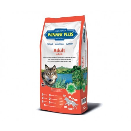 H WINNER PLUS Adult holistic με κοτόπουλο. αρνί και ρύζι είναι μια πλήρης τροφή ιδανική για ευαίσθητους σκύλους όλων των φυλών με ιδιαίτερες διατροφικές απαιτήσεις για το στομάχι και το έντερο. Η σύνθεση χωρίς γλουτένη. χωρίς καλαμπόκι. με κοτόπουλο και αρνί ως μοναδική πηγή ζωικής πρωτεΐνης και το εξαιρετικά εύπεπτο ρύζι και οι πατάτες ως πηγή φυτικών πρωτεϊνών εξασφαλίζουν την καλύτερη συμβατότητα με όλους τους σκύλους. ειδικά αυτούς με αλλεργίες και δυσανεξία στη γλουτένη. Το εκλεκτό κρέας κοτόπουλου και αρνιού. με συνολική περιεκτικότητα κρέατος 37%. εξασφαλίζει την καλύτερη πεπτικότητα. Η προσθήκη υψηλής ποιότητας φυσικών βοτάνων μαζί με το φυσικό κιχώριο (ινουλίνη) ευνοούν τις μεταβολικές λειτουργίες και διεγείρουν την εντερική μικροχλωρίδα. ενώ η L-καρνιτίνη προωθεί την ενέργεια και το μεταβολισμό του λίπους. την ανάκαμψη μετά από ένταση και ενισχύει την απόδοση. Τα φρούτα που περιέχονται εξασφαλίζουν τις φυσικές βιταμίνες και μαζί με τη βιταμίνη Ε υποστηρίζουν το ανοσοποιητικό σύστημα. παρέχοντας ενεργή προστασία των κυττάρων έναντι των ελευθέρων ριζών. Αυτή η υψηλής ποιότητας ολιστική τροφή δεν περιέχει σόγια. καλαμπόκι. αυγά και γαλακτοκομικά προϊόντα και παρασκευάζεται χωρίς χημικές χρωστικές. γευστικές ουσίες και αρώματα. Το WINNER PLUS Adult holistic με κοτόπουλο. αρνί και ρύζι είναι ένα υψηλής ποιότητας θρεπτικό προϊόν εξαιρετικά εύγεστο ιδανικό για την εξασφάλιση της ευεξίας και της ζωντάνιας του σκύλου σας.
